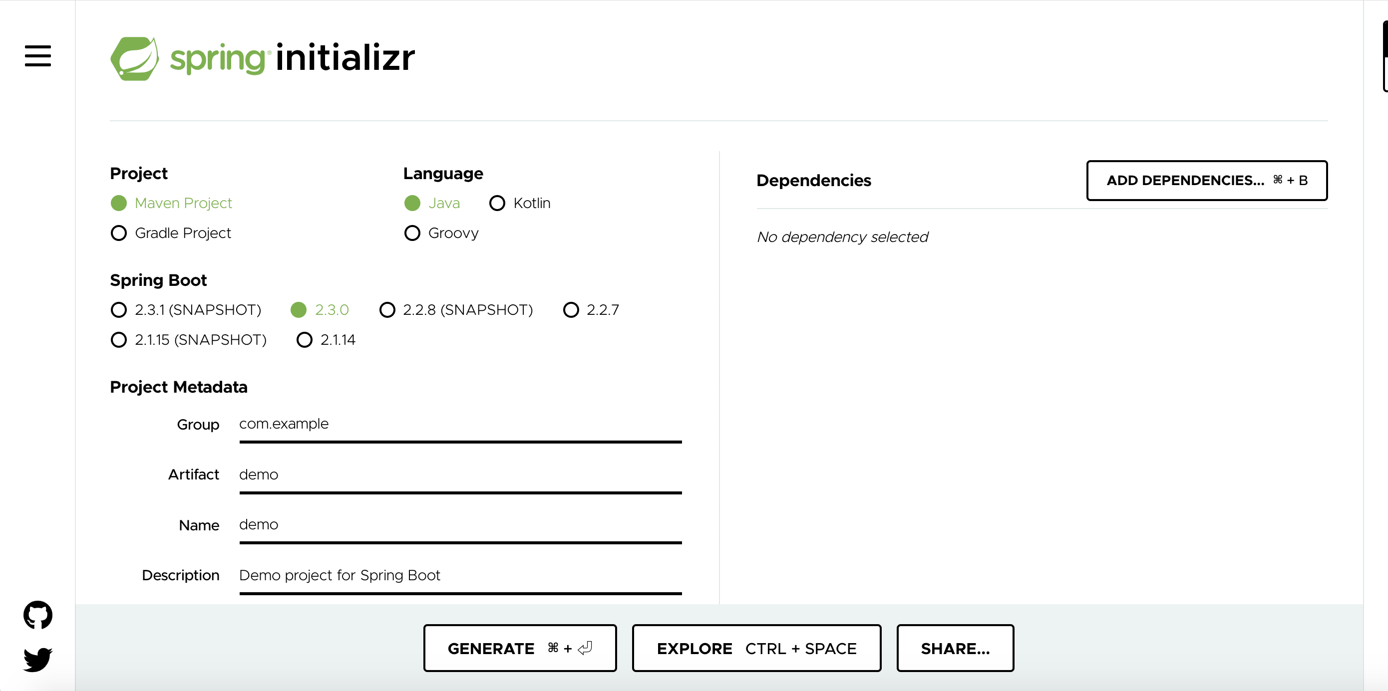 운연히 책을 읽다가 Spring Boot 로 프로젝트 구조를 설정해주는 사이트를 보았다.