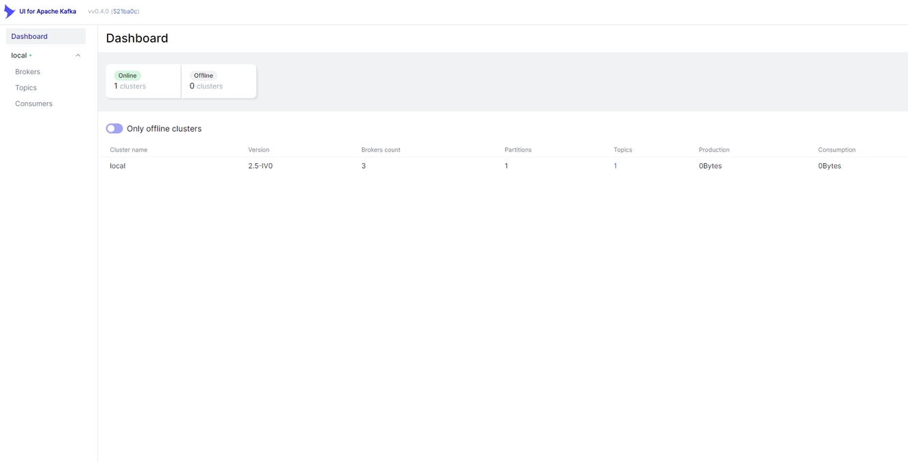 - docker-compose -f docker-kafka-ui.yaml up -d 실행한다.
