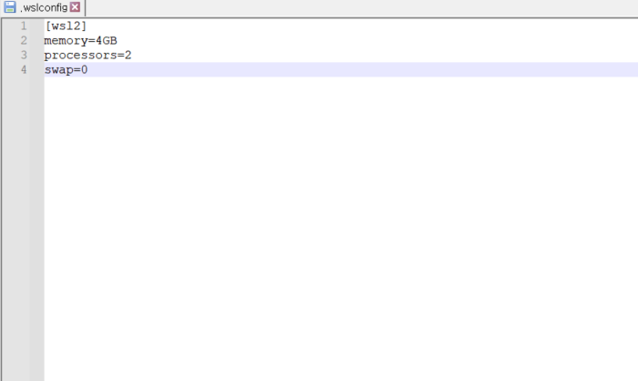 Open Source/Docker Docker Desktop Memory 제한 하기 건입니다. 2022. 9. 14. 16:07 C:\사용자\로그인아이디 폴더로 이동한다 .wslconfig 파일을 하나 만든다 아래의 캡처된 화면 처럼 wsl2에 제한을 걸어둔다. [wsl2] memory=4GB processors=2 swap=0 공유하기 게시글 관리 Imitaion .NET 저작자표시 비영리 변경금지 (새창열림) 'Open Source/Docker' Related Articles Docker Image Export 및 Import Dockerfile Sample Java11 Heroku에 docker Image 배포하기 Docker desktop이 실행이 안될때(Docker failed to initialize.Docker Desktop is shutting down.)